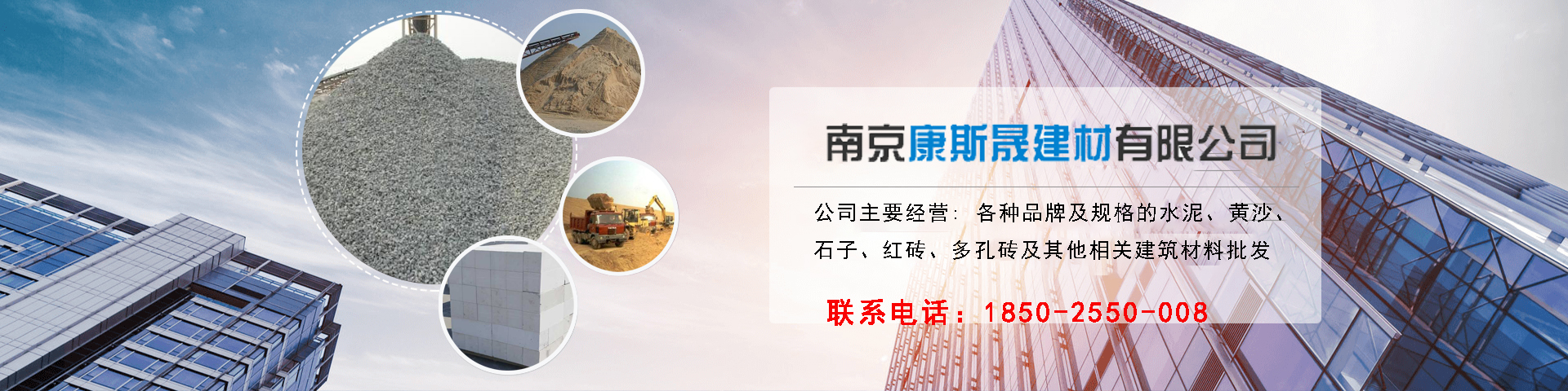 南京康斯晟建材有限公司是一家主要经营建筑材料的公司.公司主要经营: 各种品牌及规格的水泥、黄沙、石子、红砖、多孔砖及其他相关建筑材料批发。公司是集运输、送货、上楼为一体的一系列服务。从厂家直接供货,配备建材专用码头,吊装直接上车,减少中间环节,从而使其产品保质保量。本公司注重“诚信经营,以人为本,质量保证”,本着一切让客户放心、一切使客户满意、顾客至上、服务至上的经营理念,使许多初客变成了老客户,回头客。 本公司始终以顾客的满意为宗旨服务为目标,着重于整个流通渠道的商品运作,既注重效率更注重效果。水泥、黄沙、石子.瓜子片,袋装可以送上楼,散装则卸平地。全省范围内卡车送货上门,请提前1-2天订...